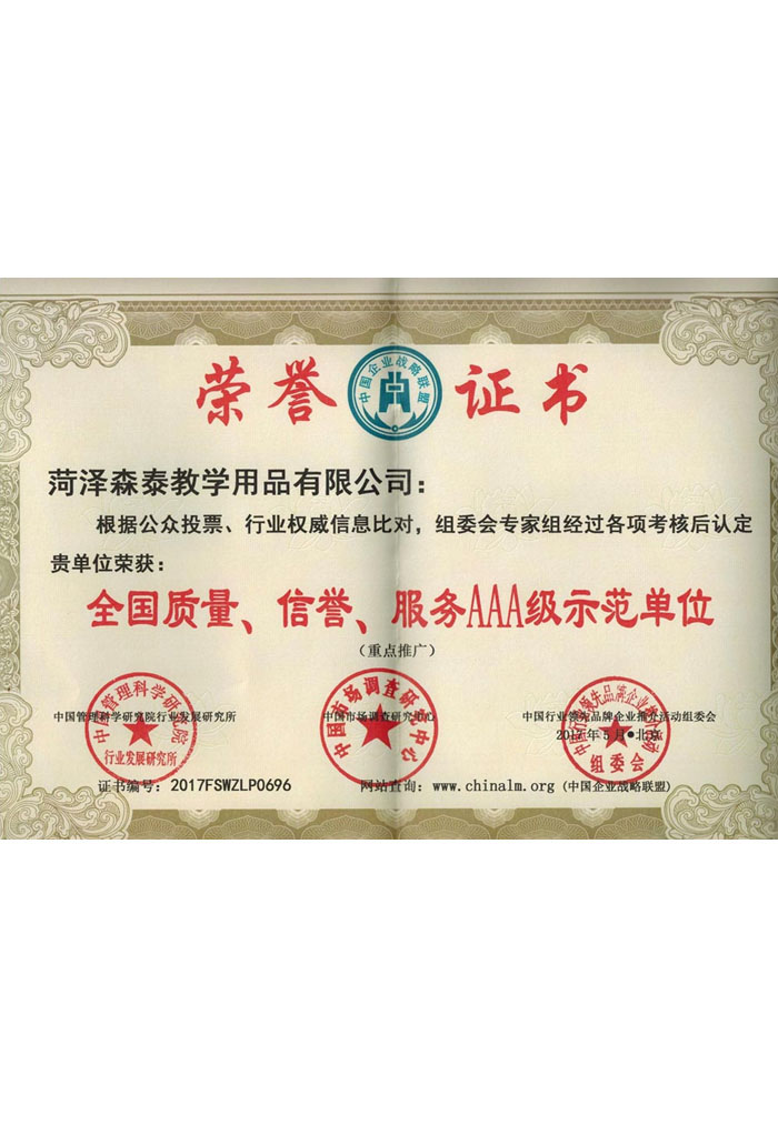 質(zhì)量信譽服務(wù)示范單位